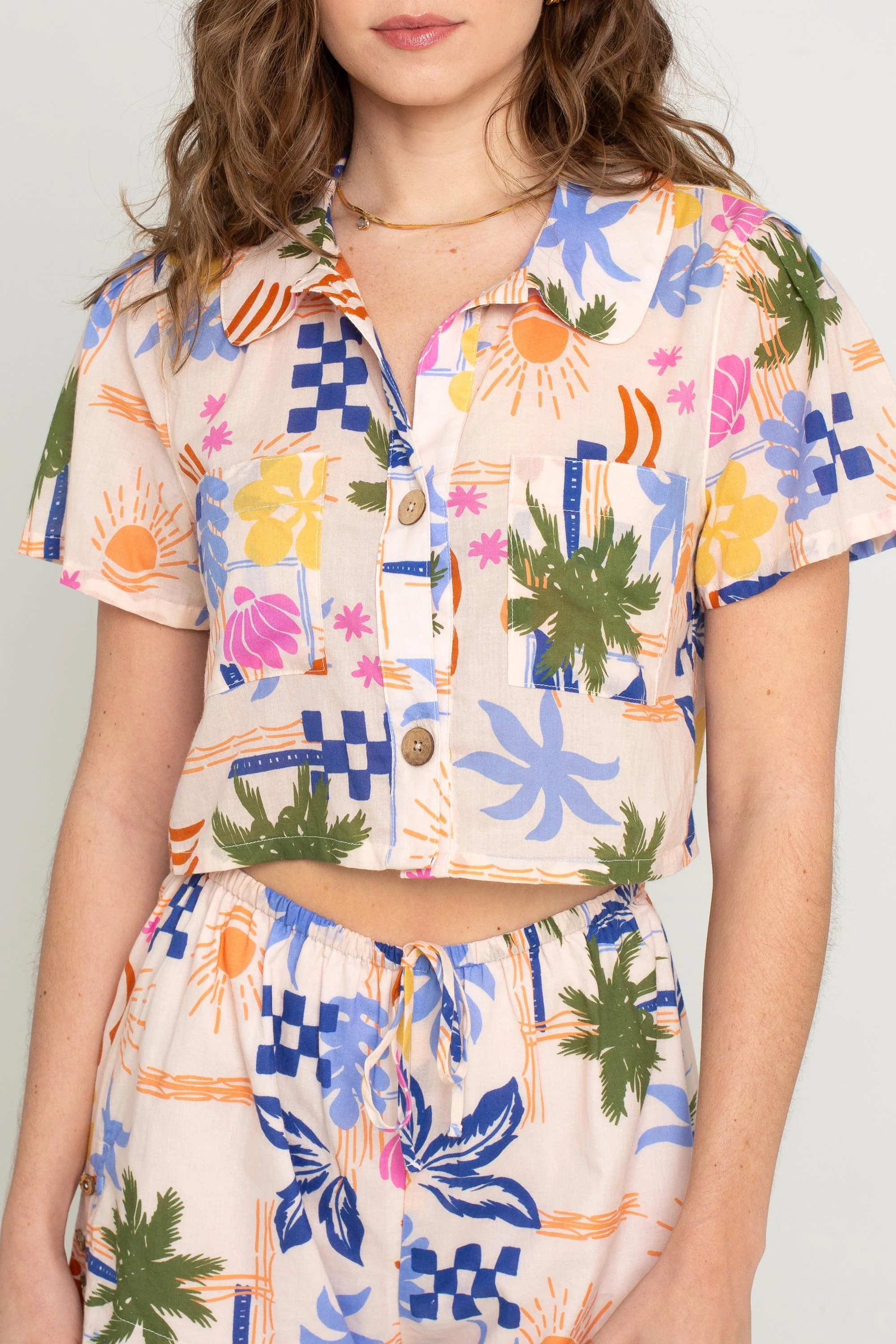 Cait Beach Print Button Down